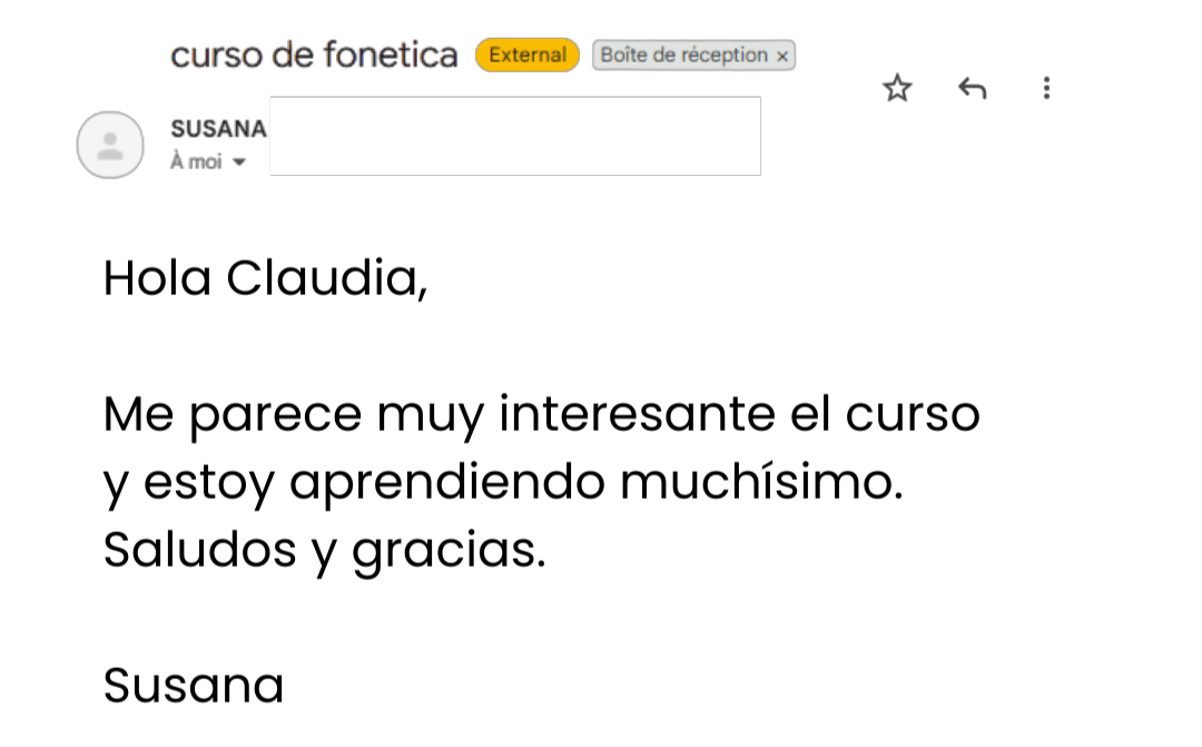 Elige un ejercicio del curso, mándame un audio y yo misma te lo corrijo