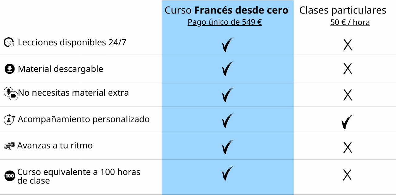 Descargo de responsabilidad. Este curso de francés ha sido diseñado para proporcionar herramientas y recursos efectivos para el aprendizaje del idioma. Sin embargo, los resultados pueden variar de una persona a otra según factores como el tiempo de estudio, la práctica individual y la exposición al idioma. El progreso en el aprendizaje depende del compromiso y la constancia del estudiante. No garantizamos resultados específicos ni fluidez en un período determinado. Este curso es un apoyo en tu camino de aprendizaje, pero el éxito dependerá de tu esfuerzo y aplicación. Si tienes dudas o necesitas asesoramiento adicional, te recomendamos complementar tu aprendizaje con práctica constante y, si es necesario, con apoyo personalizado.